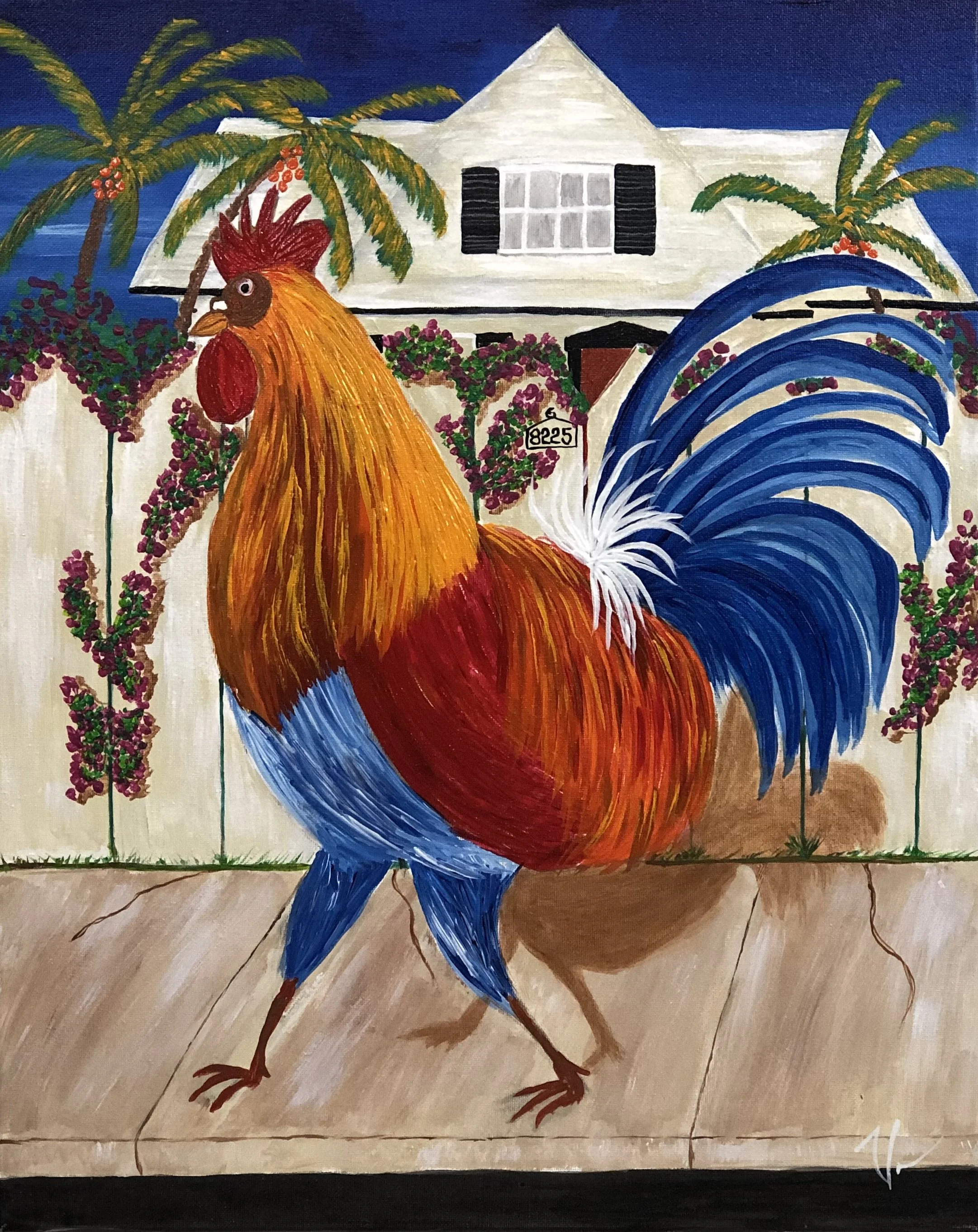 ‘“kings of Key West” in vivid acrylic colors to capture the essence of the roosters in the Florida Keys. 16x20 Prices range from $25.00 to 600.00 for Original and Giclee Prints